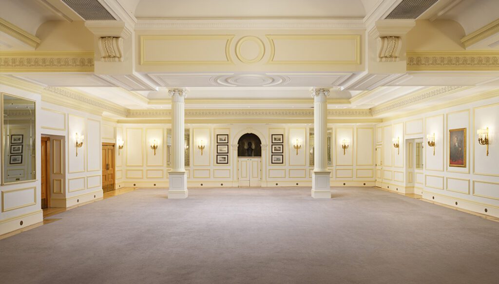 Though the hotel eventually restored the room to its original Edwardian panelling during the 2007–2010 renovation, the proportions and the spirit of the room remain unchanged. Having worked on the literal “skin” of the room, I have always appreciated its versatility. Whether configured for a theatre-style presentation for 120 guests or a grand standing reception for 400, the room retains a sense of gravity that is rare in modern venues.